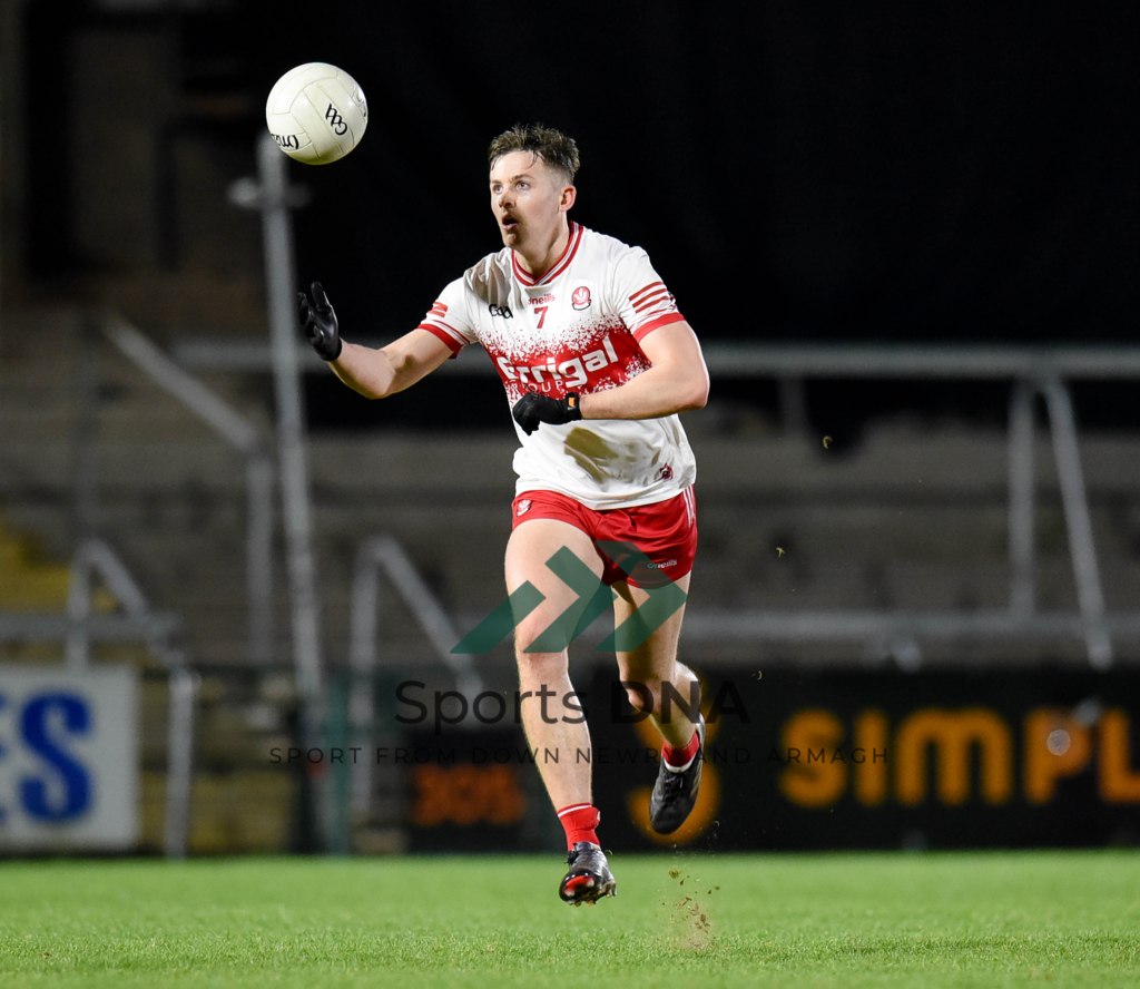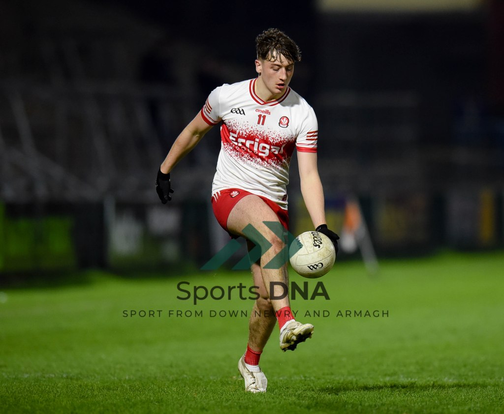 Diarmaid O’Rourke and Ger Dillon (free) cancelled each other out while Dillon did likewise with Aaron O’Neill. Dillon added the final score of the night, seeing Derry 17-points clear when the final whistle sounded.