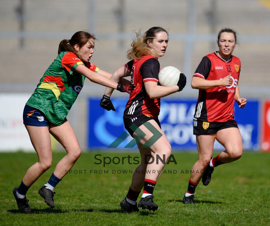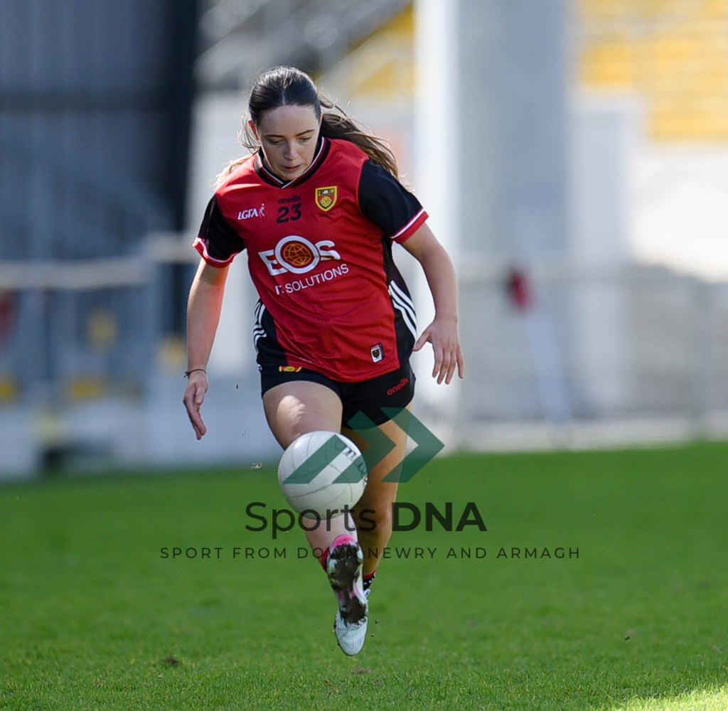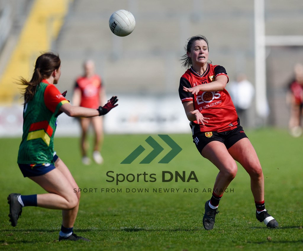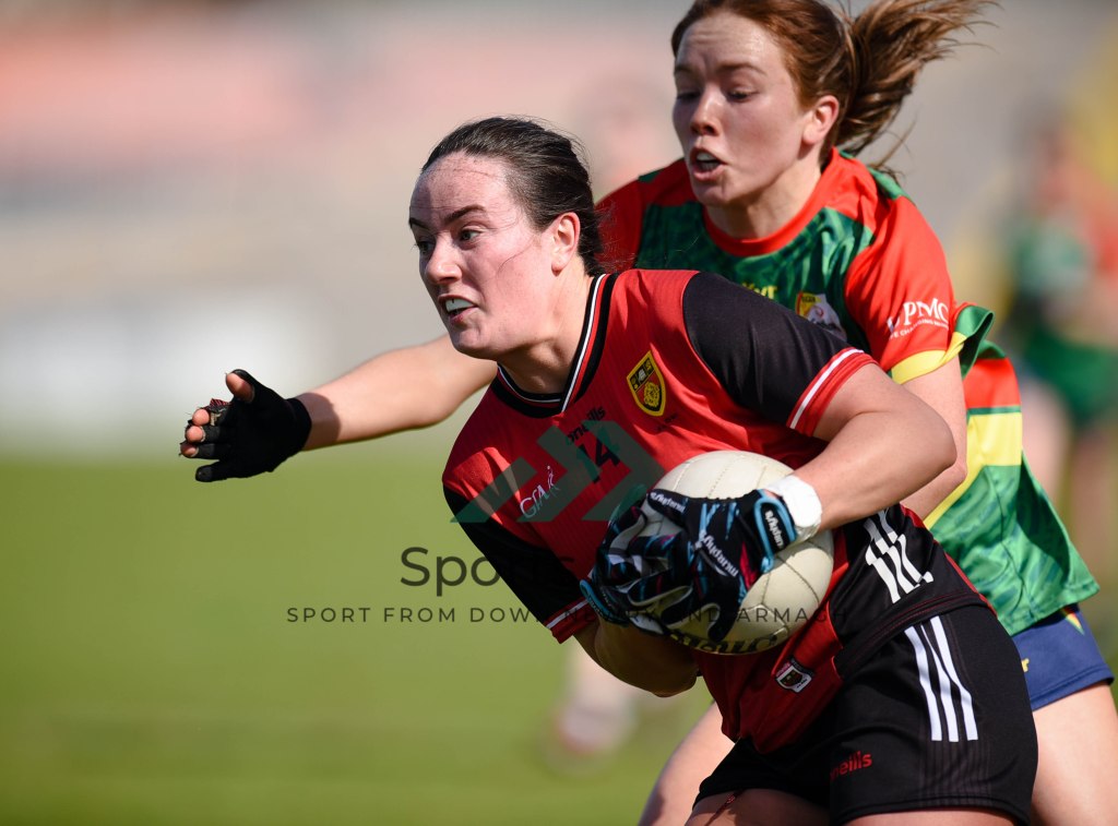 Rostrevor’s Niamh Rice got Down’s eighth and last goal of the game, as the talented forward wriggled through three Carlow defenders before blasting the ball past the keeper.