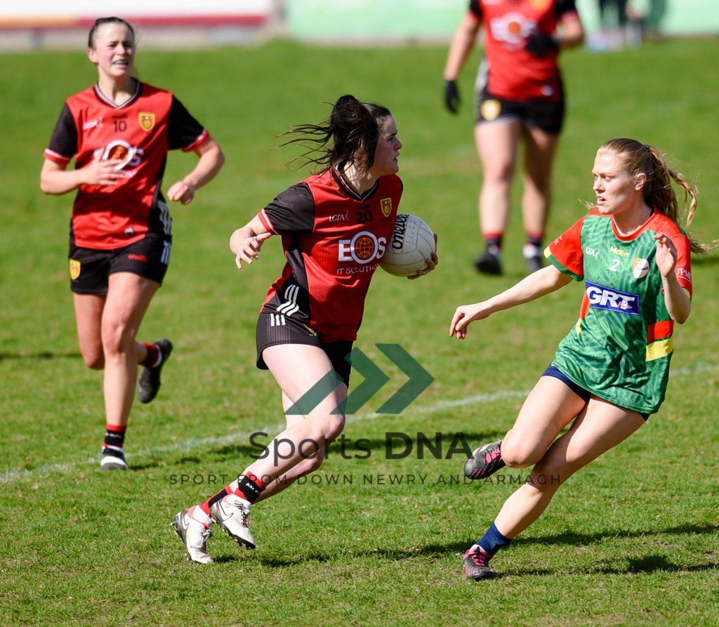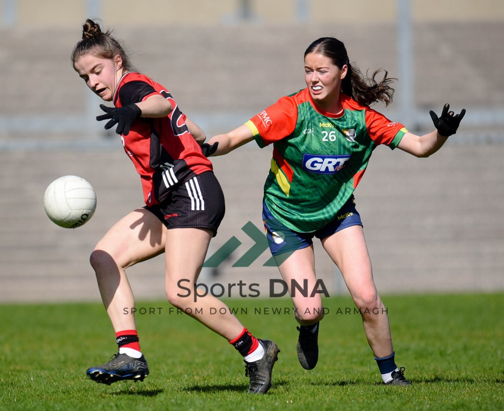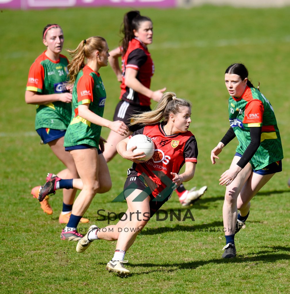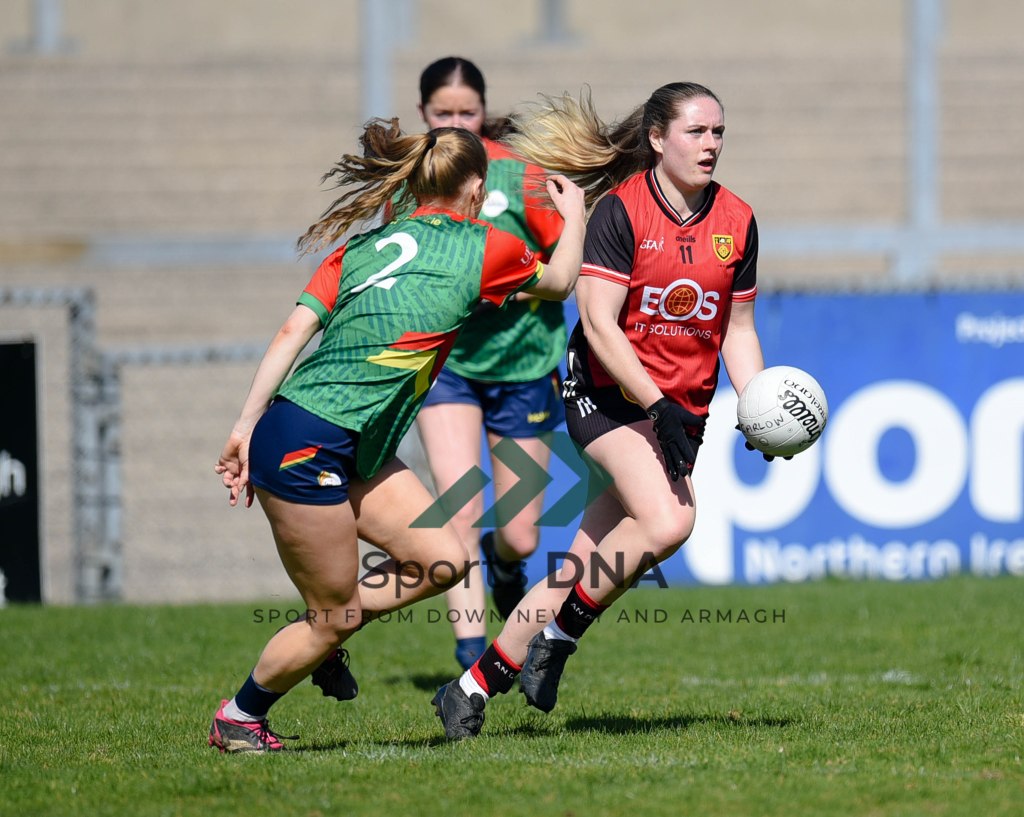 Rostrevor’s Niamh Rice got Down’s eighth and last goal of the game, as the talented forward wriggled through three Carlow defenders before blasting the ball past the keeper.