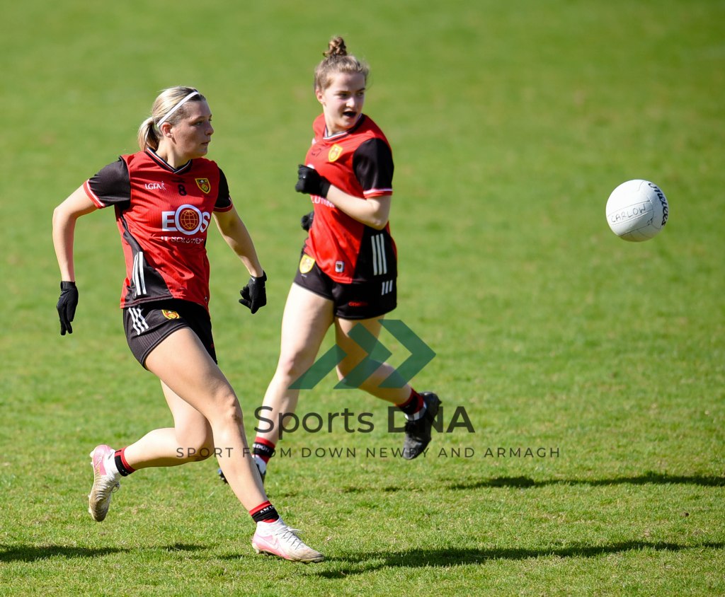 Down continued to push forward in the second half. Quick hands and feet opened a half chance for Niamh King, who cleared the bar. Aine Smyth’s turn of pace allowed her an opportunity on goal, but her powerful drive just crept over the bar for a single.
