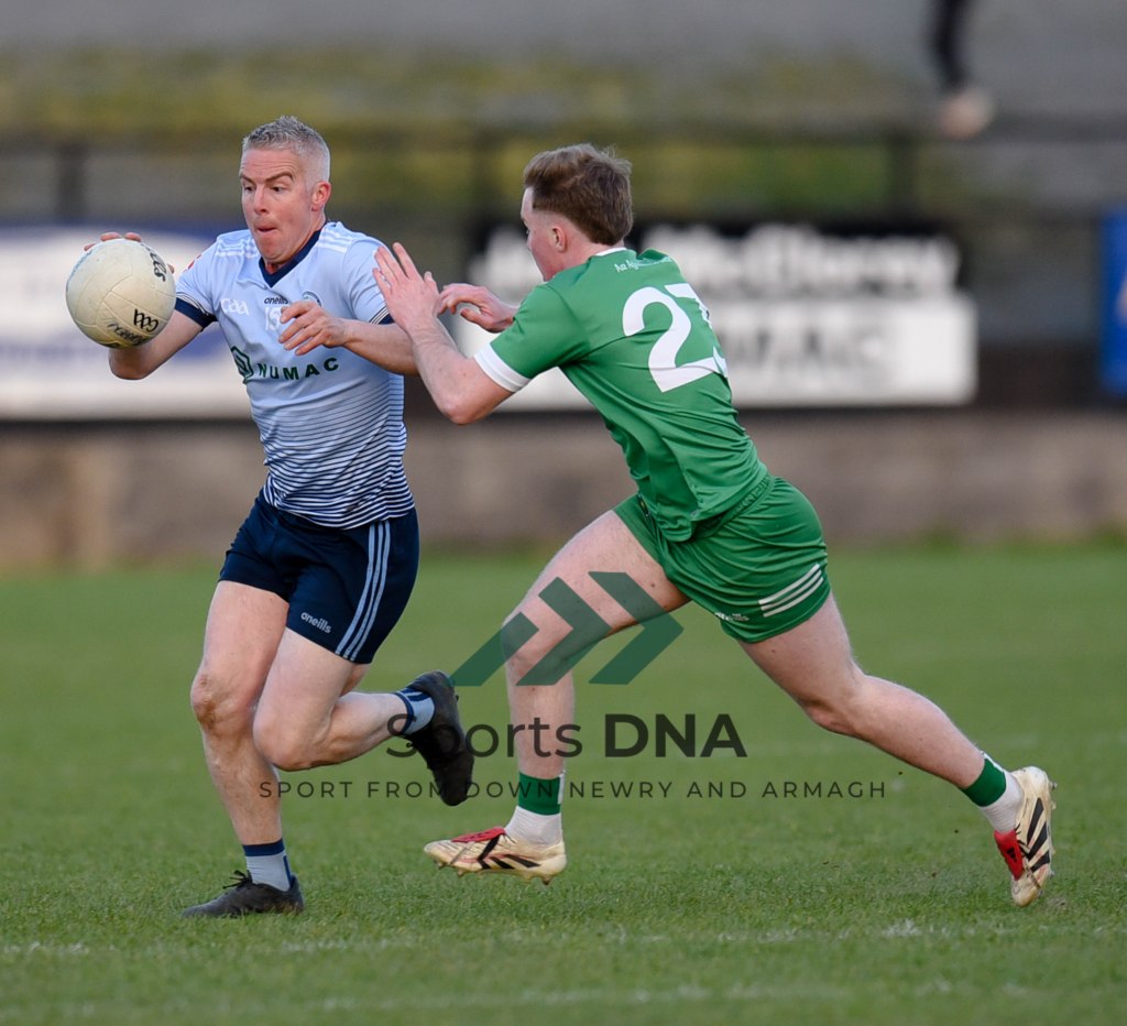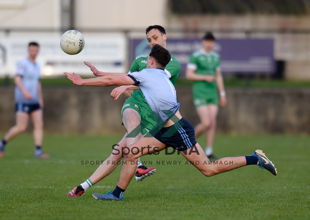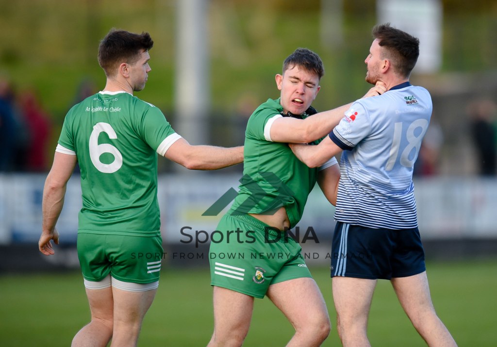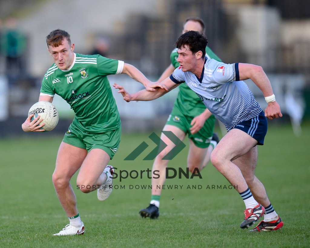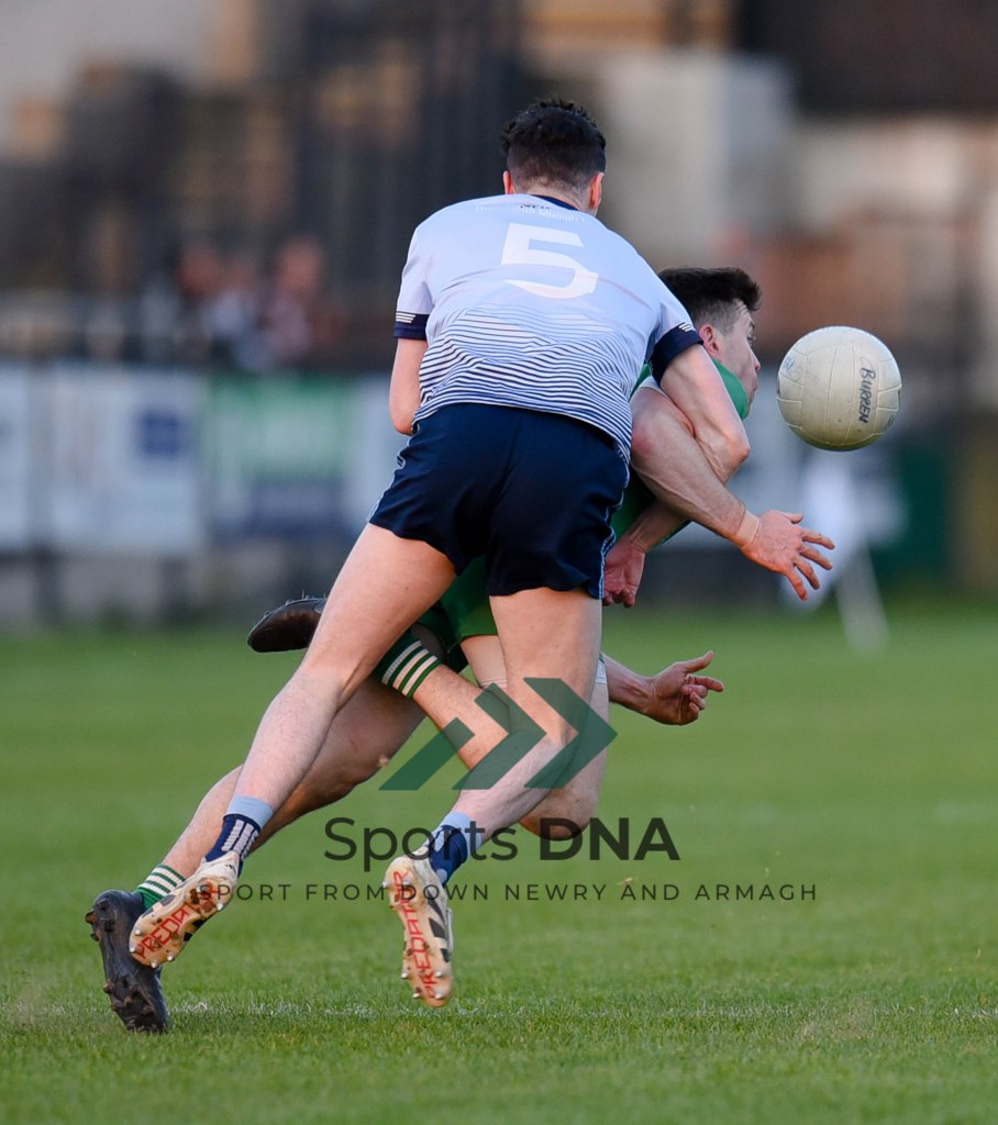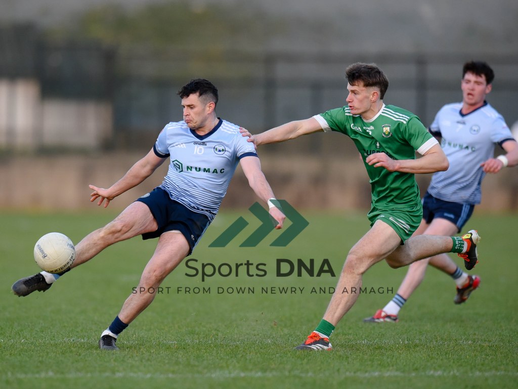 A bullet shot from the left boot of former Down County star, Liam Kerr, which lodged itself in the back of Michael Fitzpatrick’s net, was the highlight moment of Friday night’s Division 1 clash at St. Patrick’s Park.