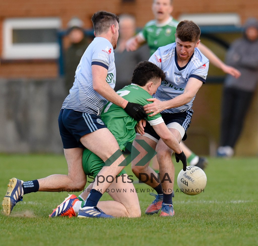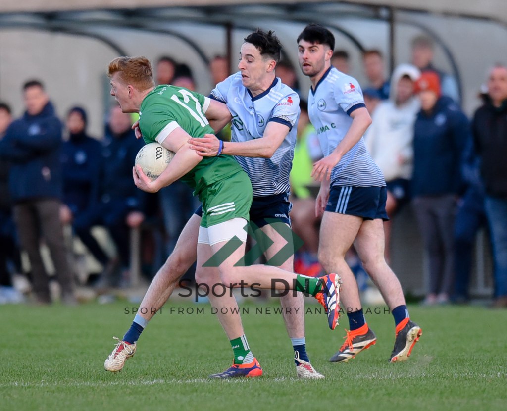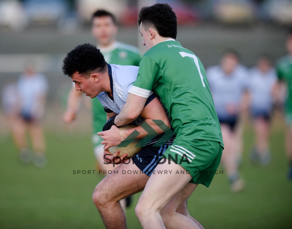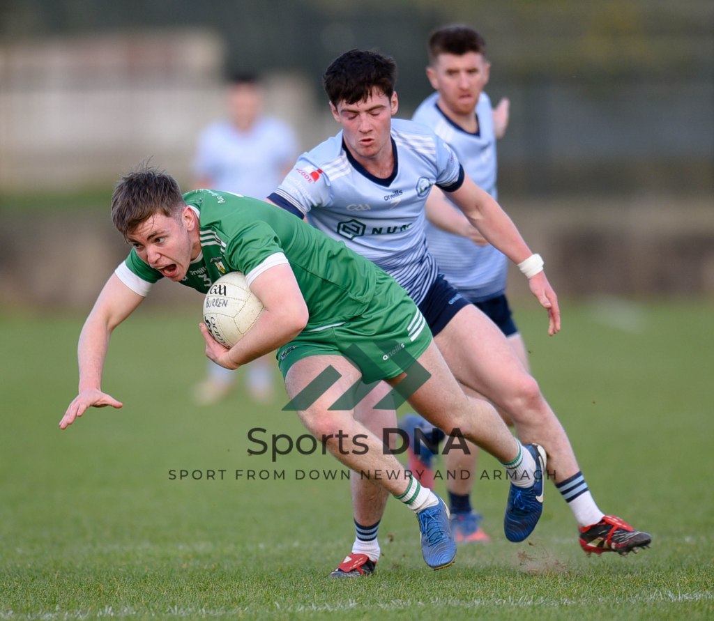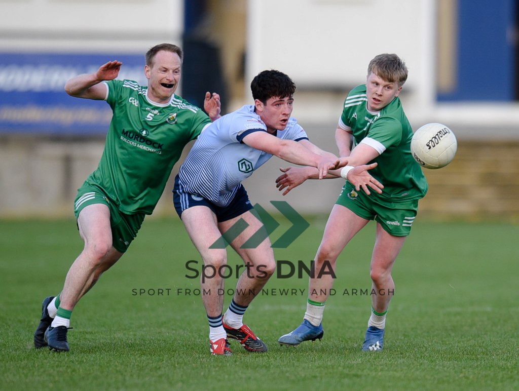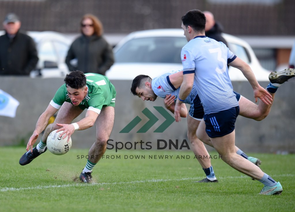 A bullet shot from the left boot of former Down County star, Liam Kerr, which lodged itself in the back of Michael Fitzpatrick’s net, was the highlight moment of Friday night’s Division 1 clash at St. Patrick’s Park.