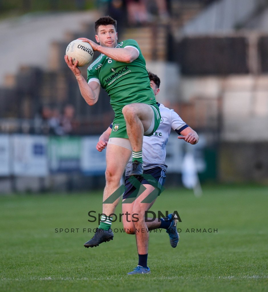 Burren led 0-05 to 0-00 until Caolan Gallagher opened the Mayobridge account with a free on 19 minutes. Burren used the strong wind to their advantage, with Niall Toner and Treanor particularly dangerous as the teams left the field for halftime with the visitors leading 1-09 to 0.02.