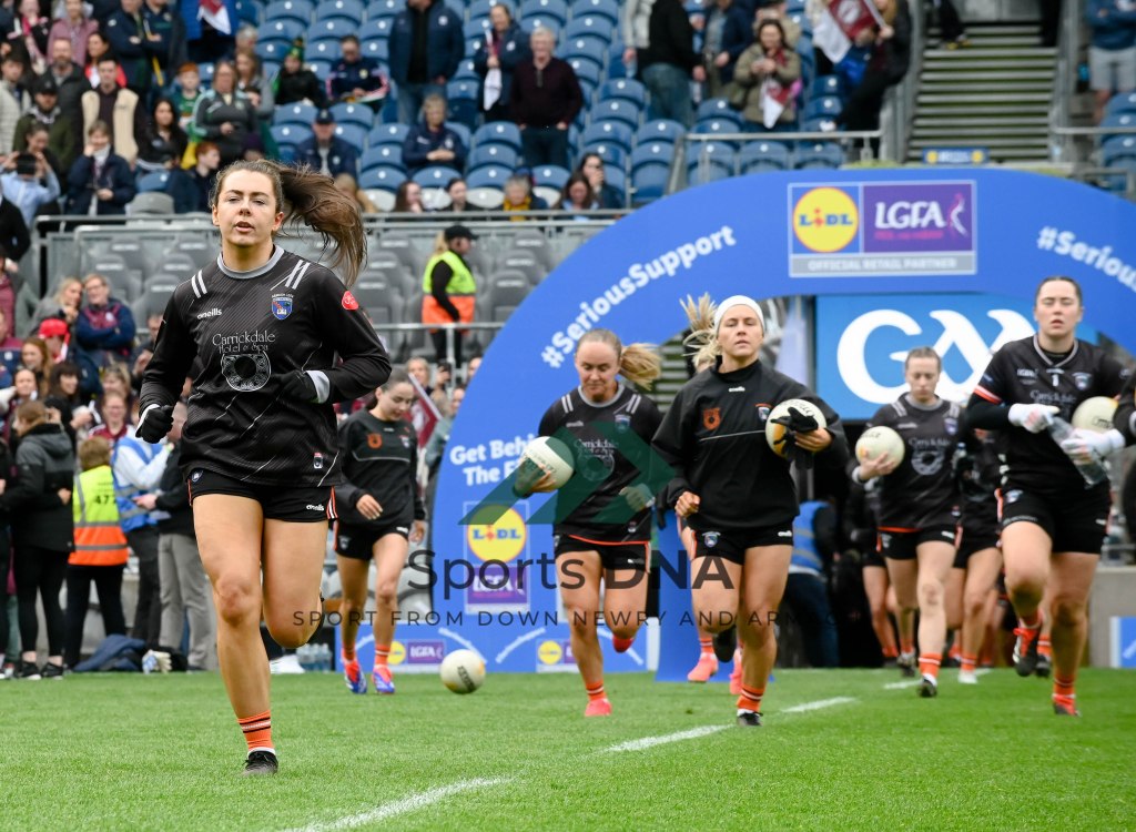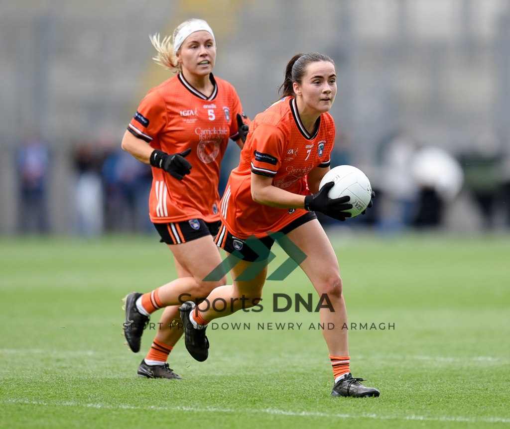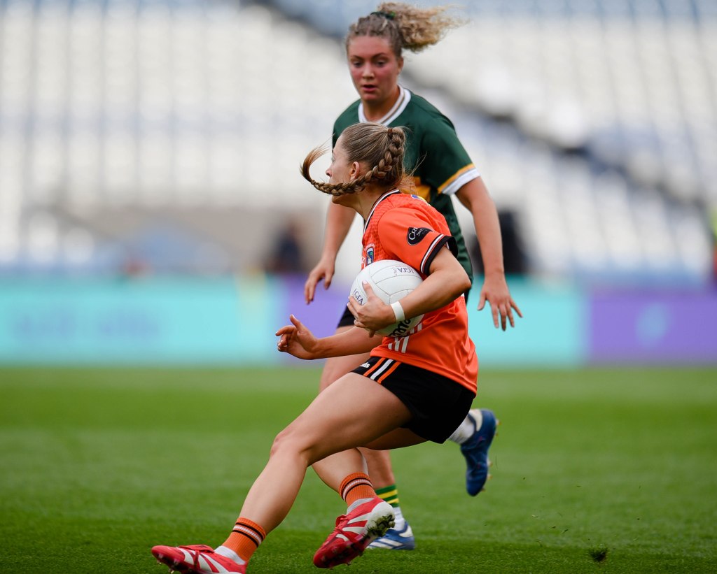 Picked out by Siofra O’Shea after she gathered an Armagh kick-out, last year’s All-Ireland winning skipper Niamh Carmody floated a looping effort over the head of Armagh netminder Anna Carr for a deadlock-breaking goal on seven minutes.