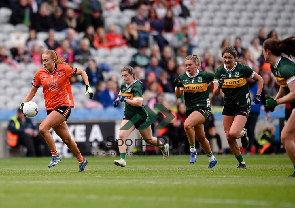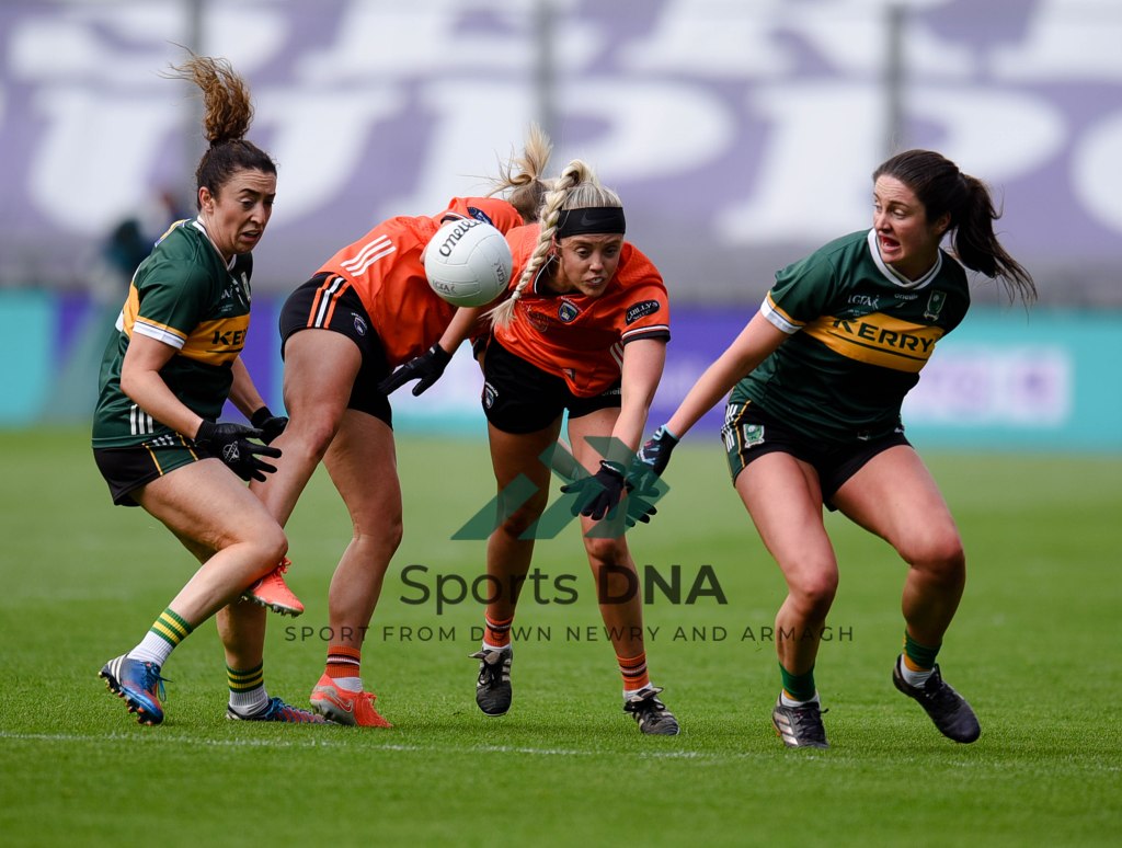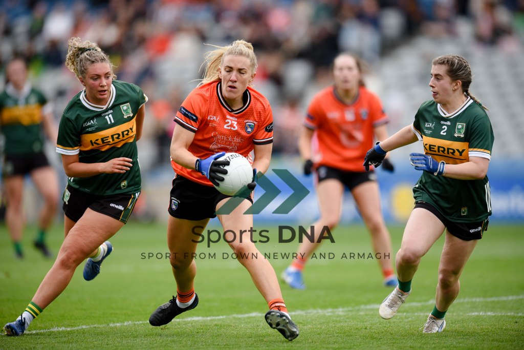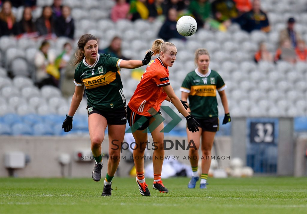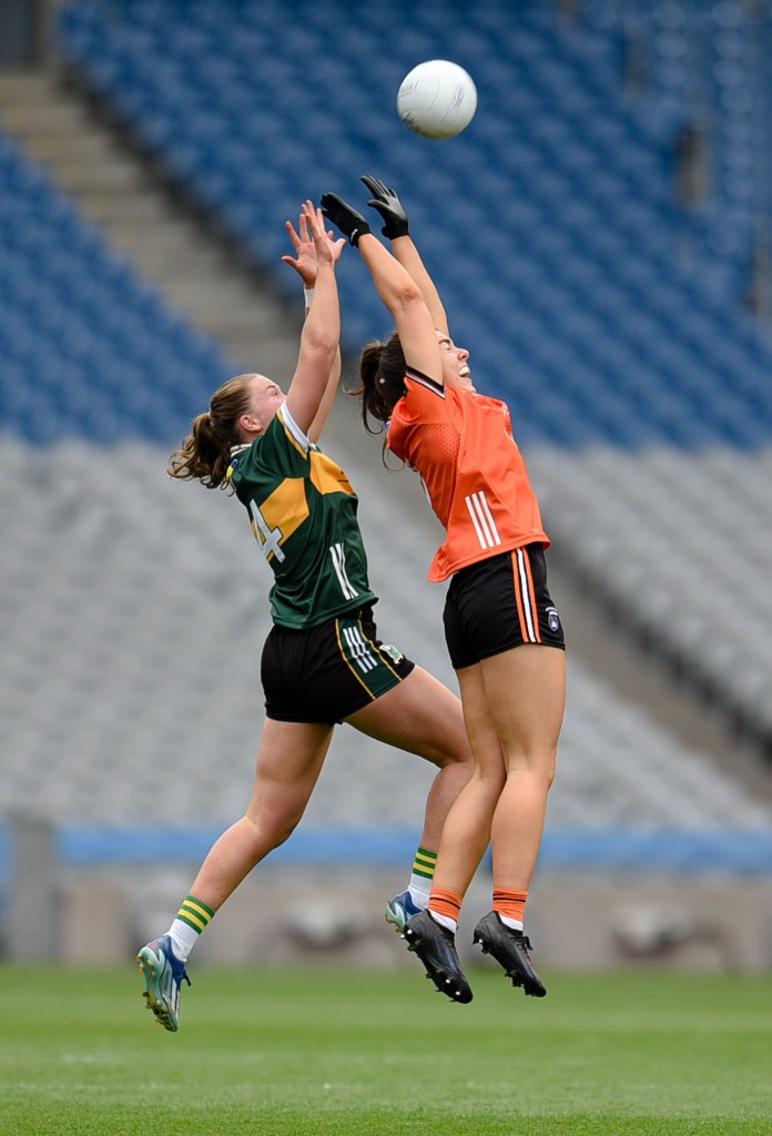 To Armagh’s credit, they did persevere with their challenge during the closing quarter of the game with substitutes Caoimhe McNally and Kelly Mallon finding the target to supplement four additional points from Reel. Yet with O’Leary (two), O’Shea and Rachel Dwyer all firing over scores of their own, Kerry eased towards a deserved victory.
