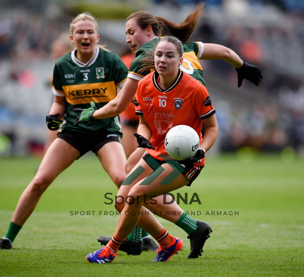 The impressive Carmody proceeded to split the uprights for a rampant Kingdom, before Armagh finally got up and running with three unanswered points from Lauren McConville and Eve Lavery (two).