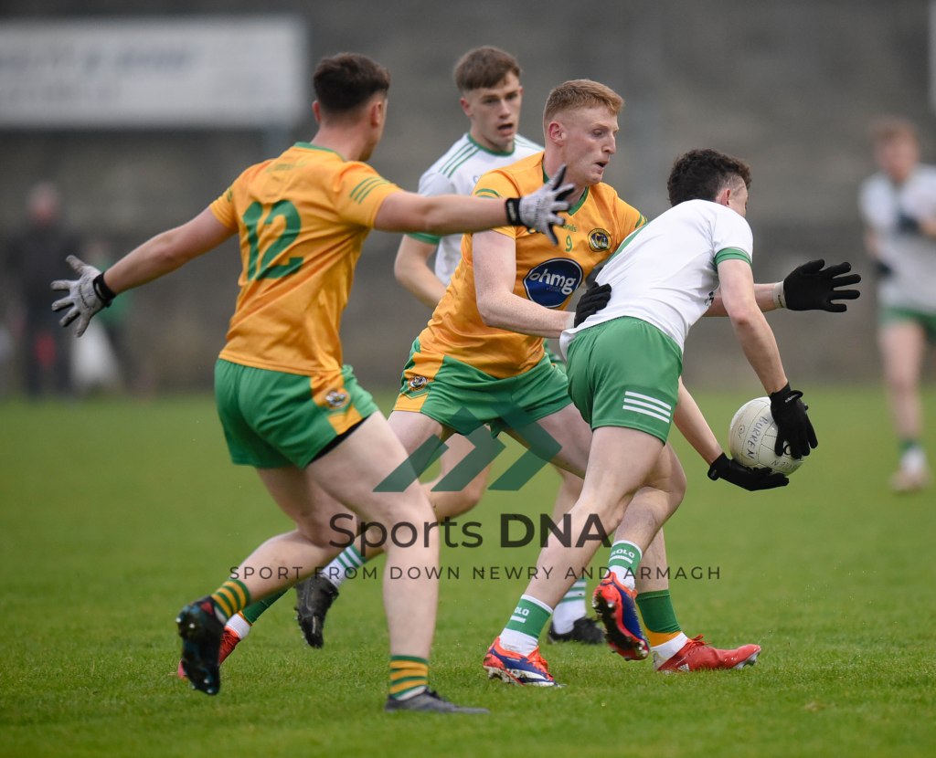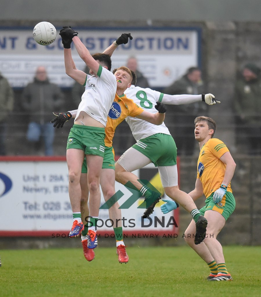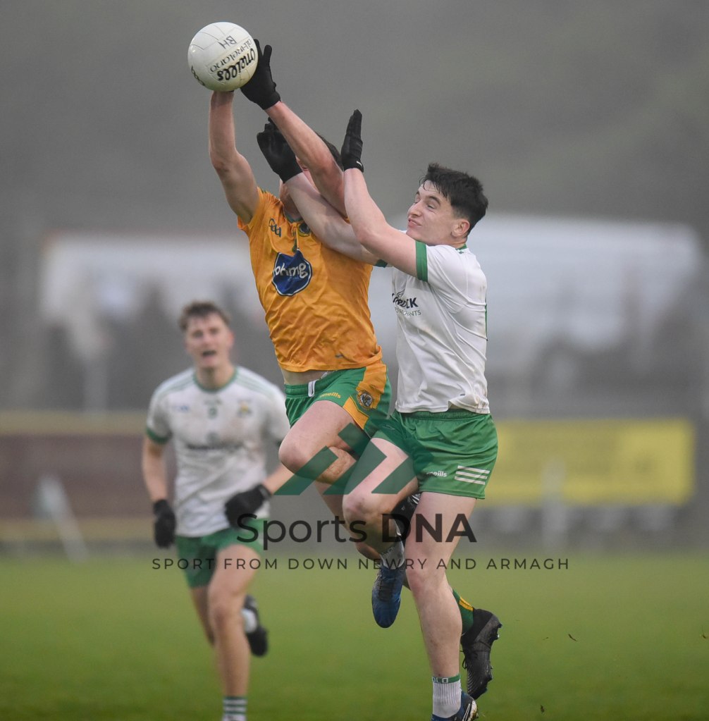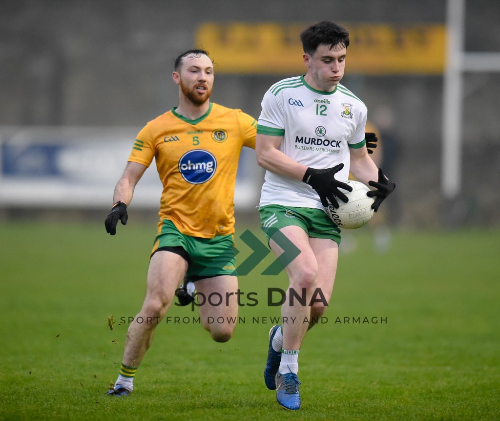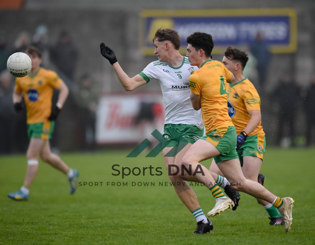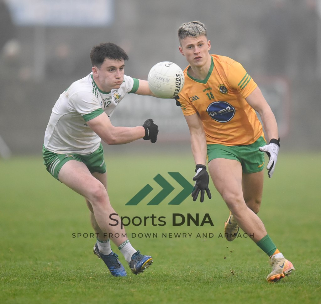Two 2 pointers from the boots of Ballyholland pair Seamus Loughran and Jack Murtagh in the last few minutes at St Mary’s earned the Harps an unlikely draw after Burren had led by 8 points during the second half of Friday night’s game.