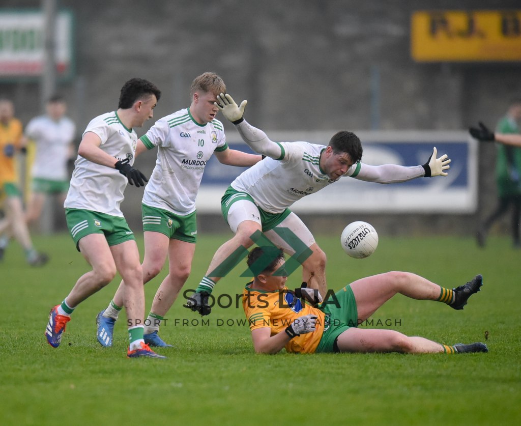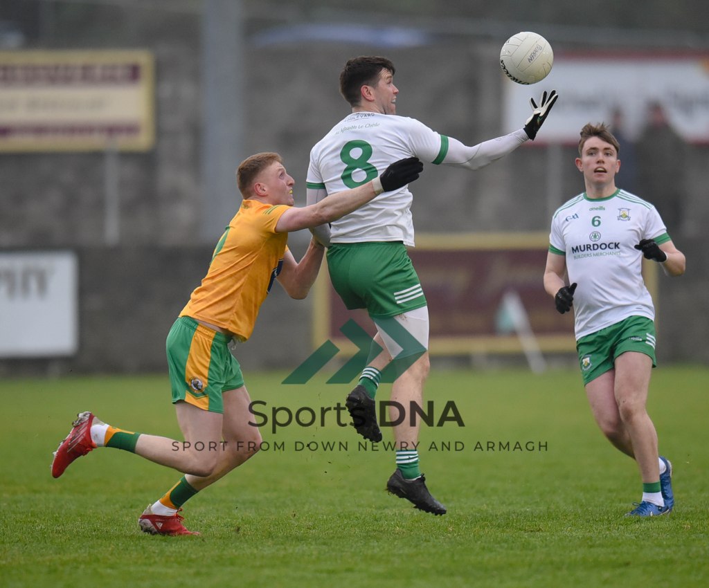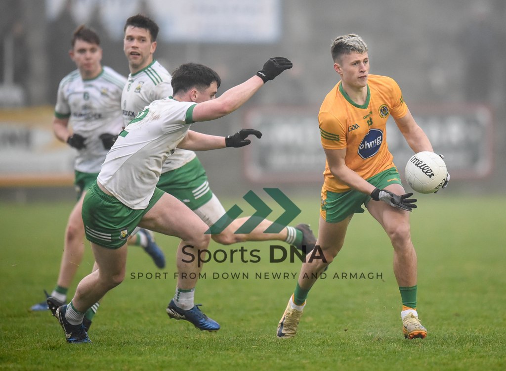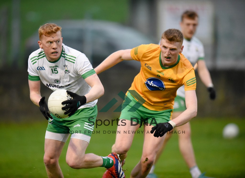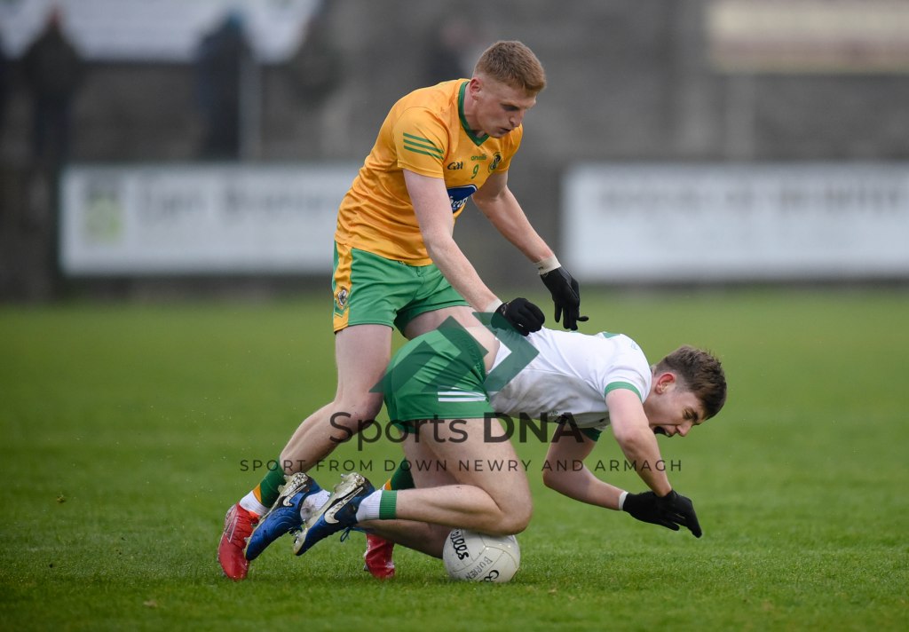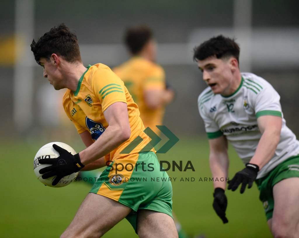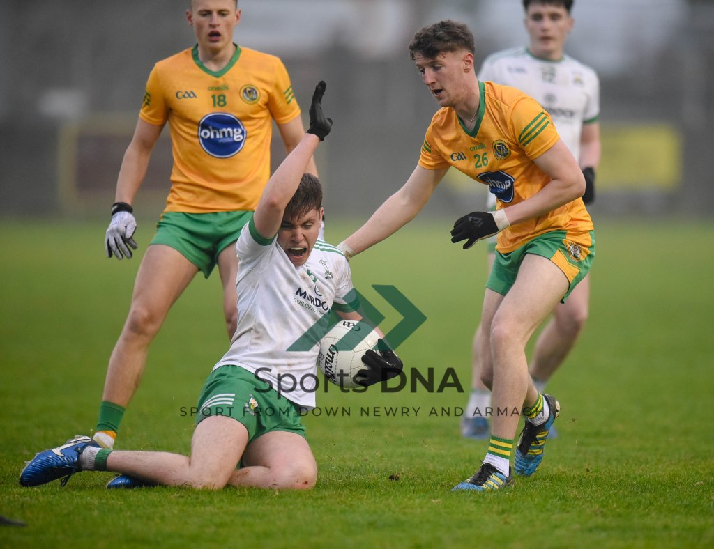 Two 2 pointers from the boots of Ballyholland pair Seamus Loughran and Jack Murtagh in the last few minutes at St Mary’s earned the Harps an unlikely draw after Burren had led by 8 points during the second half of Friday night’s game.