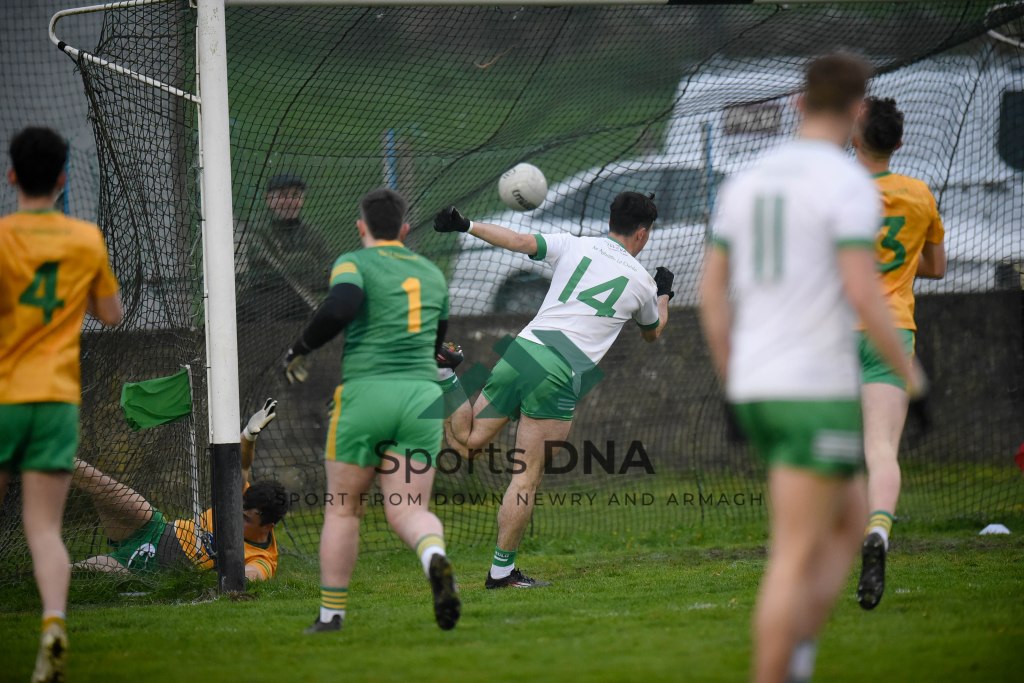 Ballyholland had started the better team against a weakened Burren outfit, with marksman Seamus Loughran hitting an upright when a goal was on. Burren raised the first green flag after great work down the left from Mussen, and Liam Kerr saw Niall Toner blast home from close range. Kerr then scored the goal of the game after a deft flick on from Ronan McGrath.